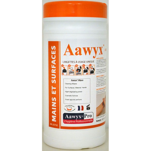 La lingette Aawyx® AA-2060 est composée d'un intissé à usage unique d'excellente qualité imprégné d'une formulation désinfectante innovante et parfumée à l'huile essentielle de pin.