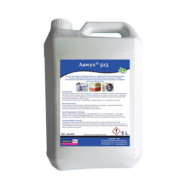 Additif améliorant le détachage du linge. Aawyx® 515 est actif sur tous les types de fibres. Pouvoir anti-redéposition. Renforce l'action du bain de lavage.