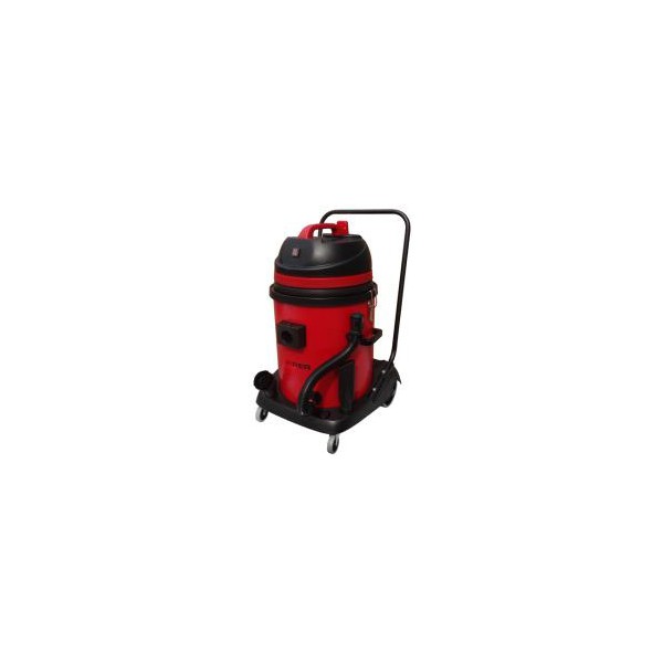 Aspirateur eau et poussières de 55 litres, cuve plastique avec flexible de 2,5 mètres, 2 tubes chromés, embouchure pour sols durs, embouchure eau, embout biseauté, brosse ronde, filtre synthétique.