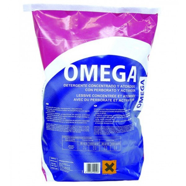 Lessive atomisée OMEGA désinfectante dès 40ºC, sans phosphates.