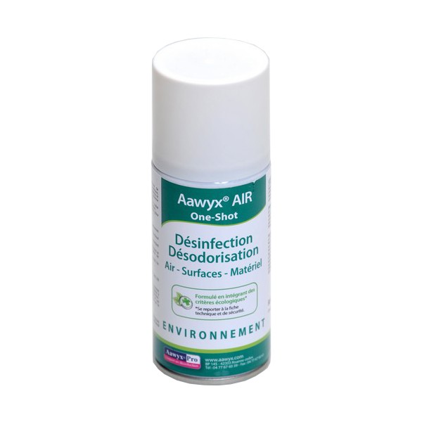Aérosol de type one-shot désinfectant et désodorisant puissant et agréablement parfumé.