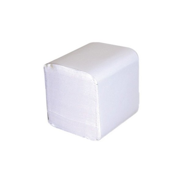 Papier hygiénique plié en paquet feuille à feuille "enchevêtré", deux plis. Doux et résistant. Excellente délitabilité.