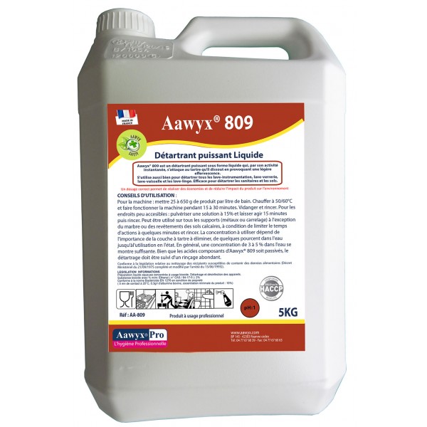 Aawyx®808 Détartre tous les laveurs professionnels, lave-vaisselle, lave-verrerie et lave-linge entartrés ainsi que les sanitaires ou sols et surfaces (métaux ou carrelage) à l'exception du marbre ou revêtements des sols calcaires.