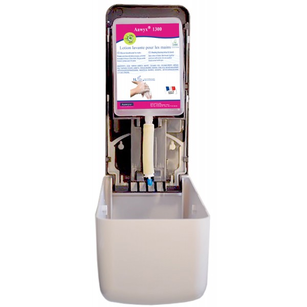 Distributeur Blanc à cartouche pour : gel hydroalcoolique savon et savon désinfectant, savon douche Hair and Body.