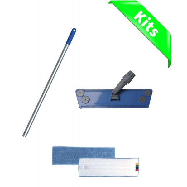 Ce kit possède un manche aluminium qui est destiné à l'entretien des sols et un support ABS de lavage trapèze pour velcro 40cm, sa connexion universelle avec griffes et bague de serrage est compatible avec tous les manches.