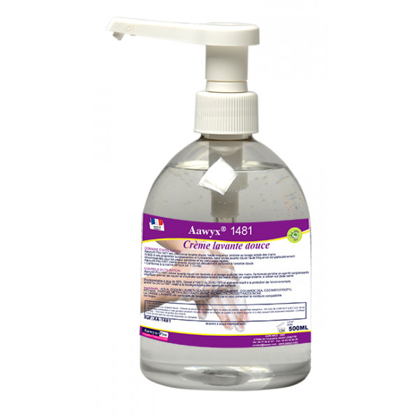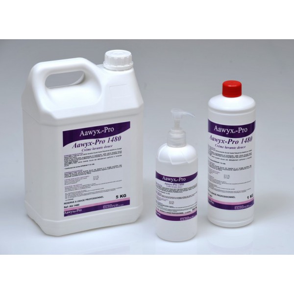 Aawyx® Doux et Parfumé 1480 est un gel crémeux délicatement parfumé à l’amande douce, destiné au lavage quotidien des mains.